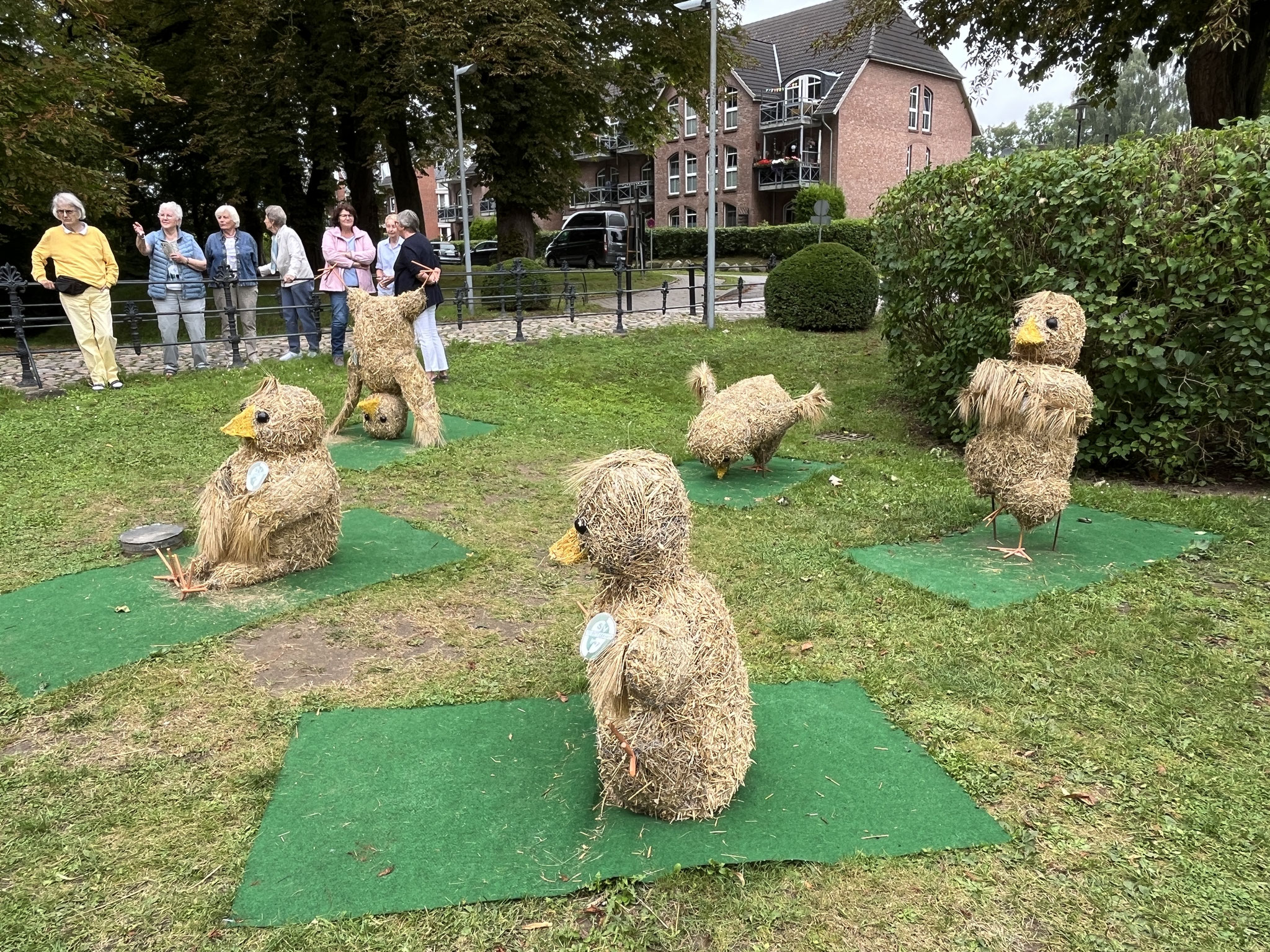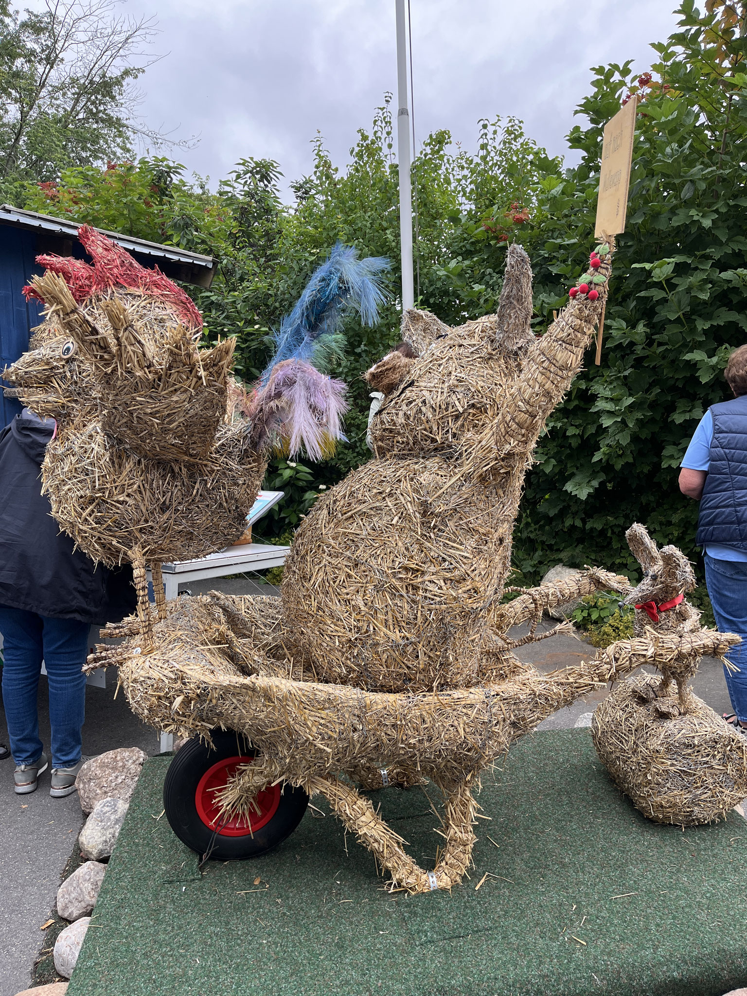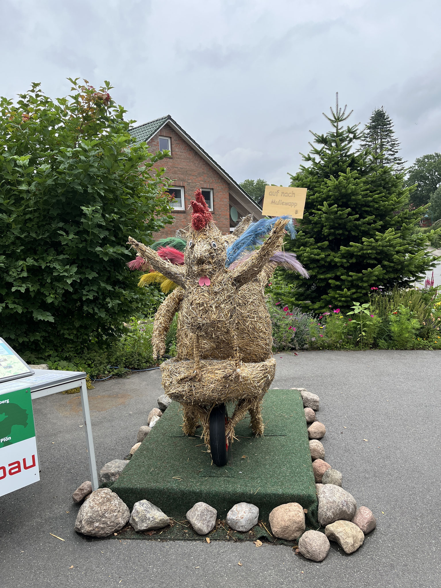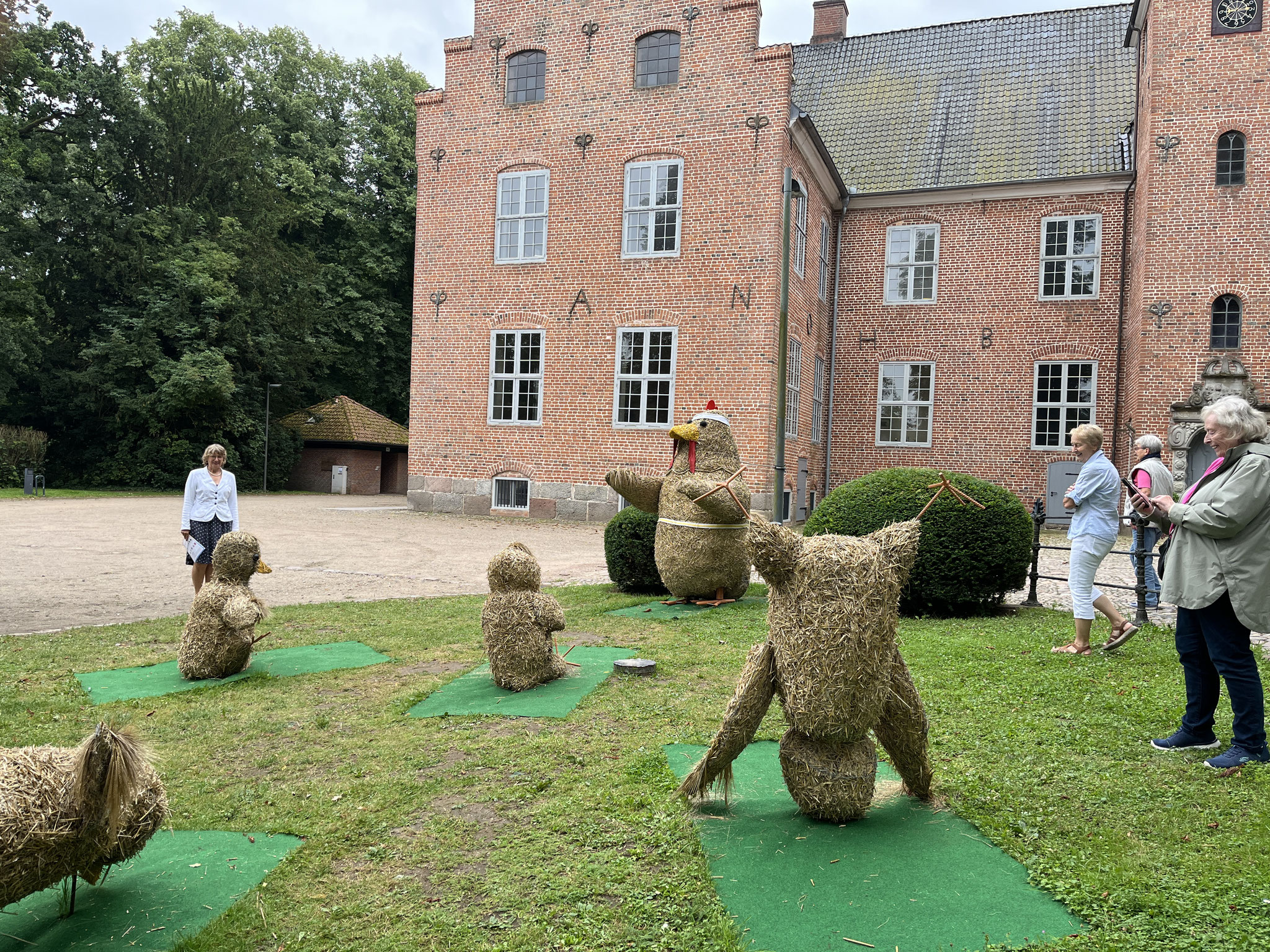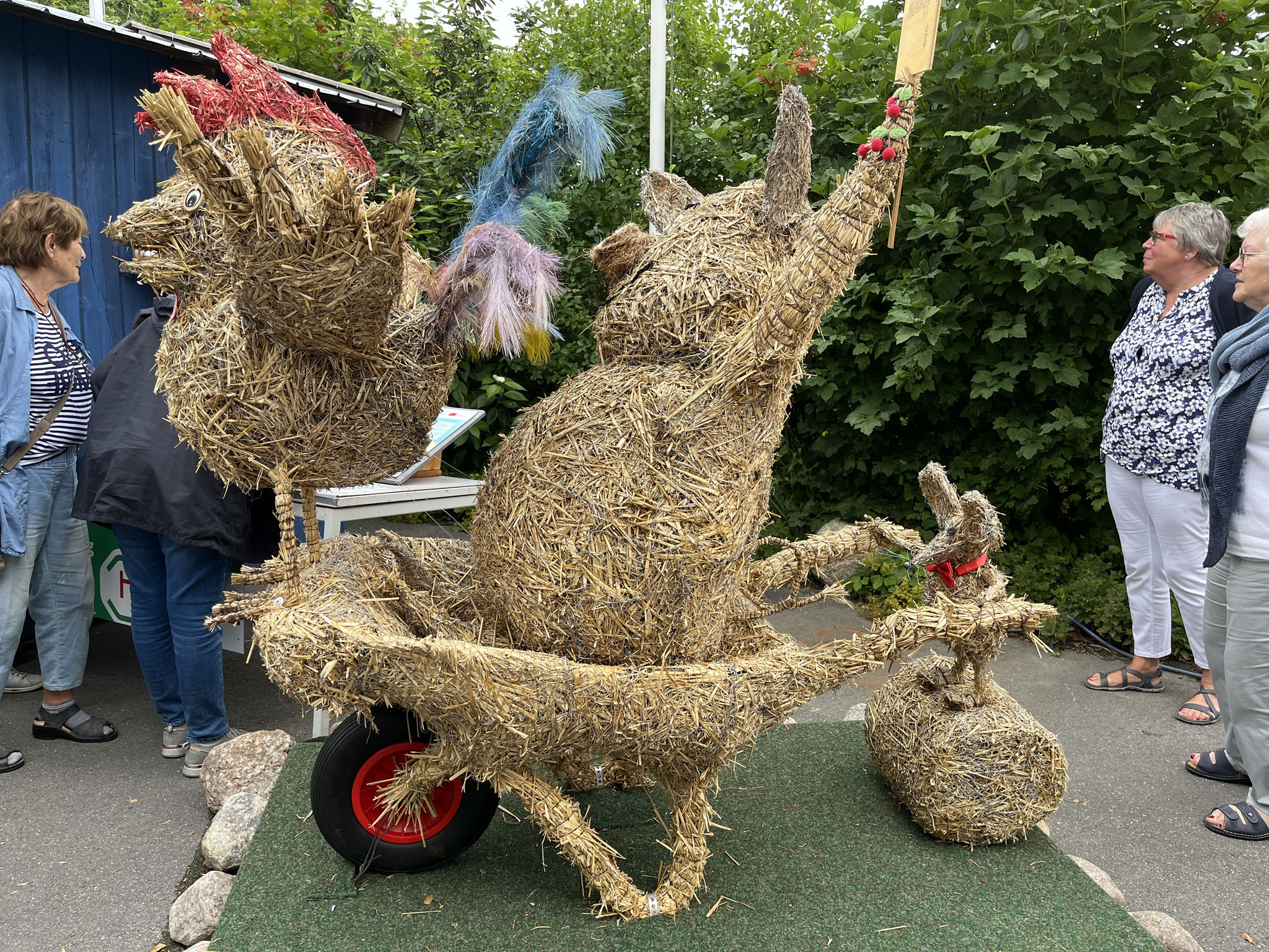 Jede Strohfigur ist etwas Besonderes, ob es in Bendfeld der „Kot-Bac-Mountain“, das „Hochzeitspaar“ in Fahren, in Stoltenberg: Partnergemeinde von Mullewapp oder in Probsteierhagen die Yoga-Hühner.