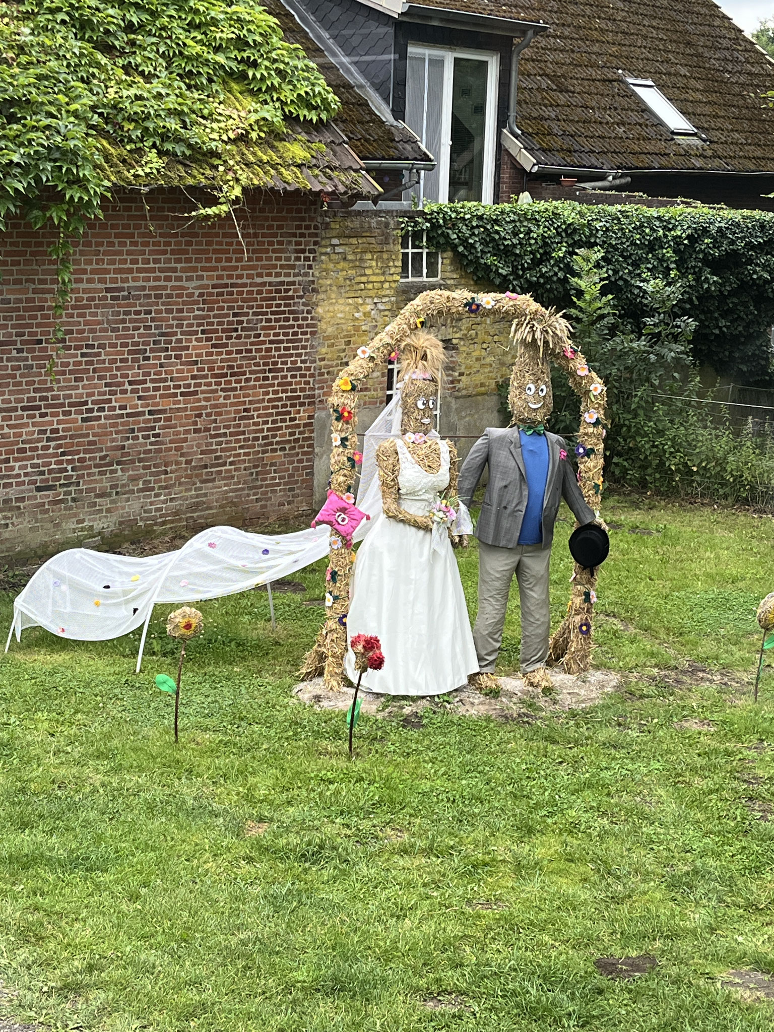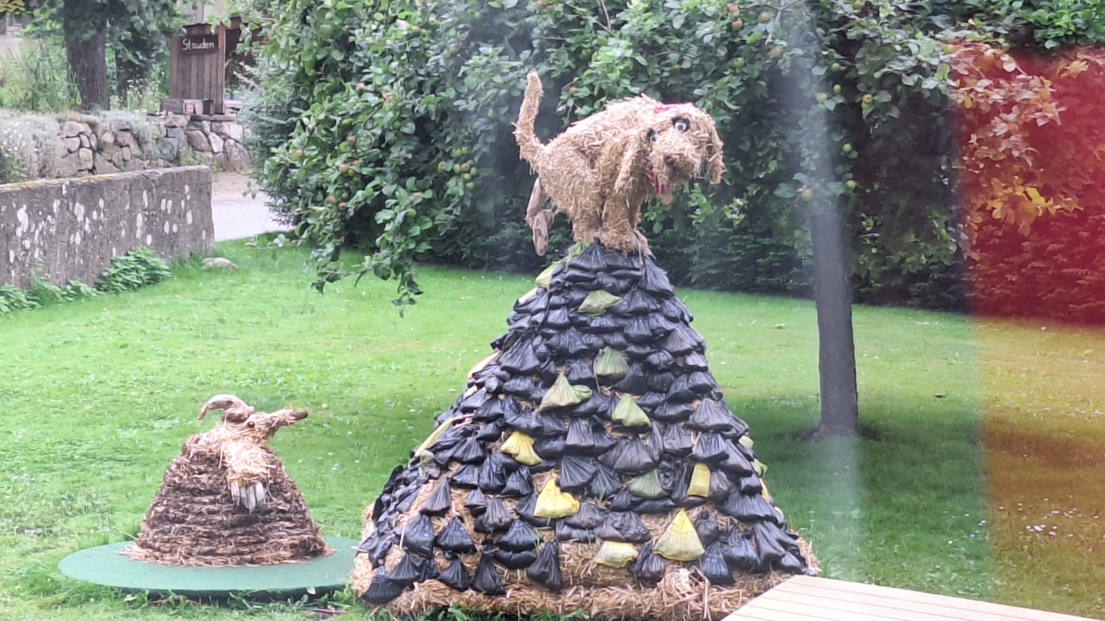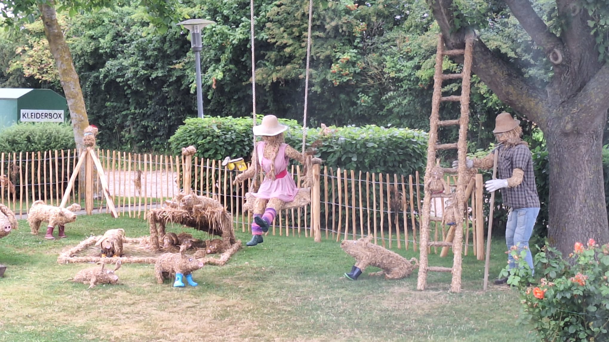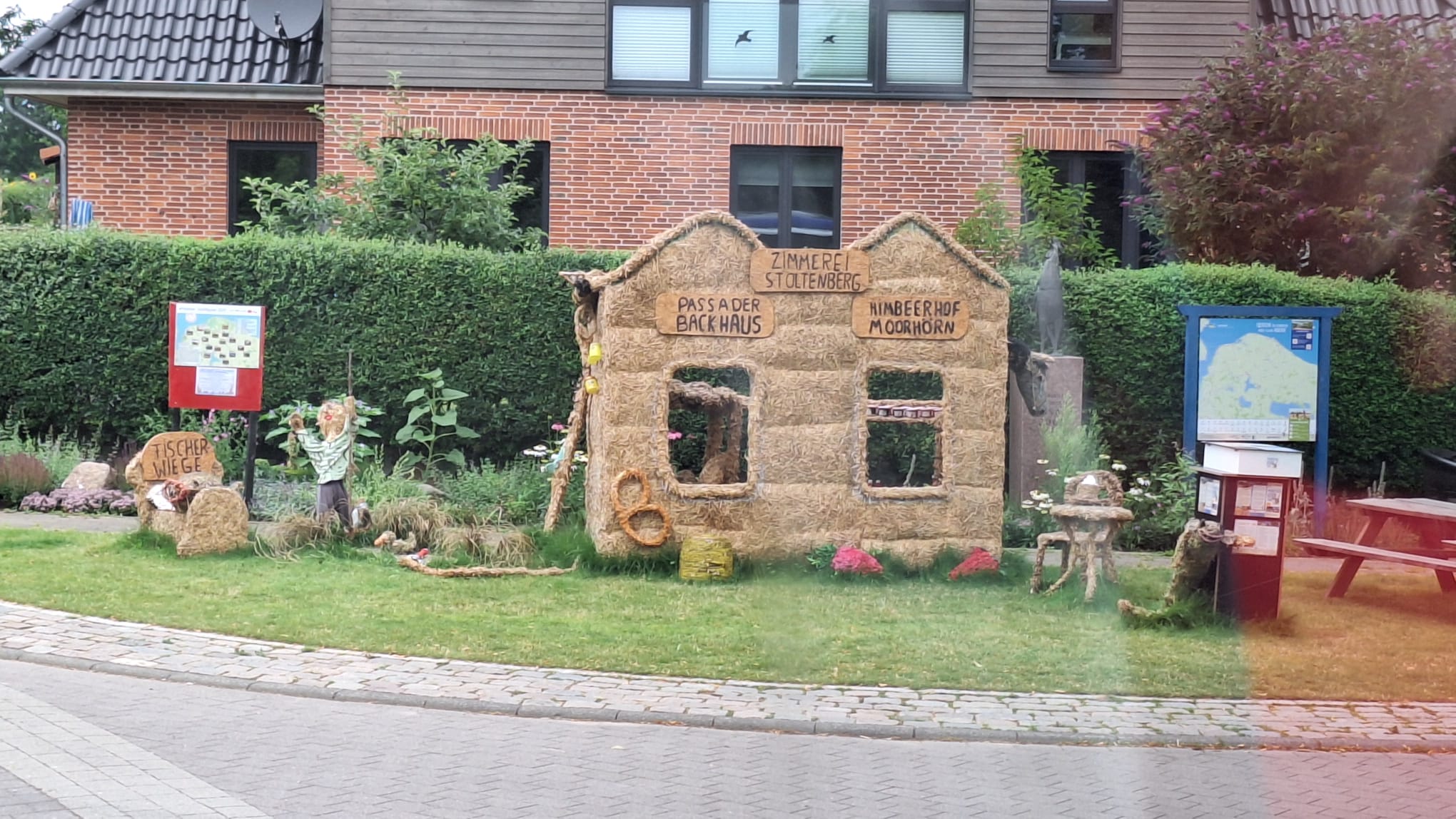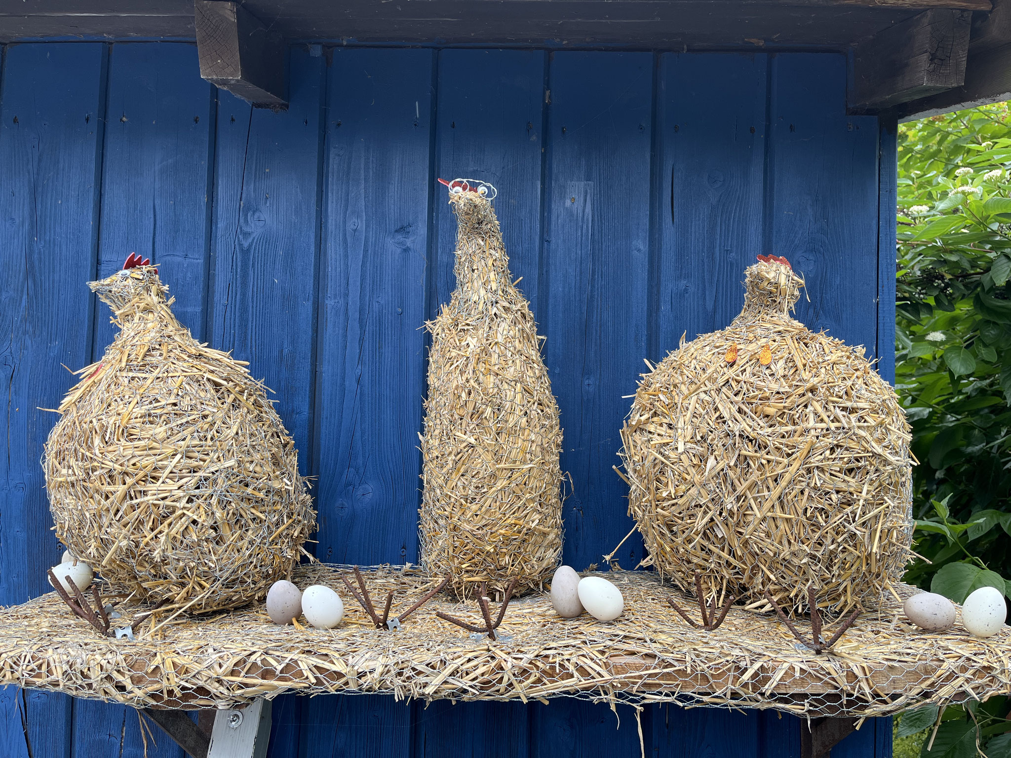 Jede Strohfigur ist etwas Besonderes, ob es in Bendfeld der „Kot-Bac-Mountain“, das „Hochzeitspaar“ in Fahren, in Stoltenberg: Partnergemeinde von Mullewapp oder in Probsteierhagen die Yoga-Hühner.